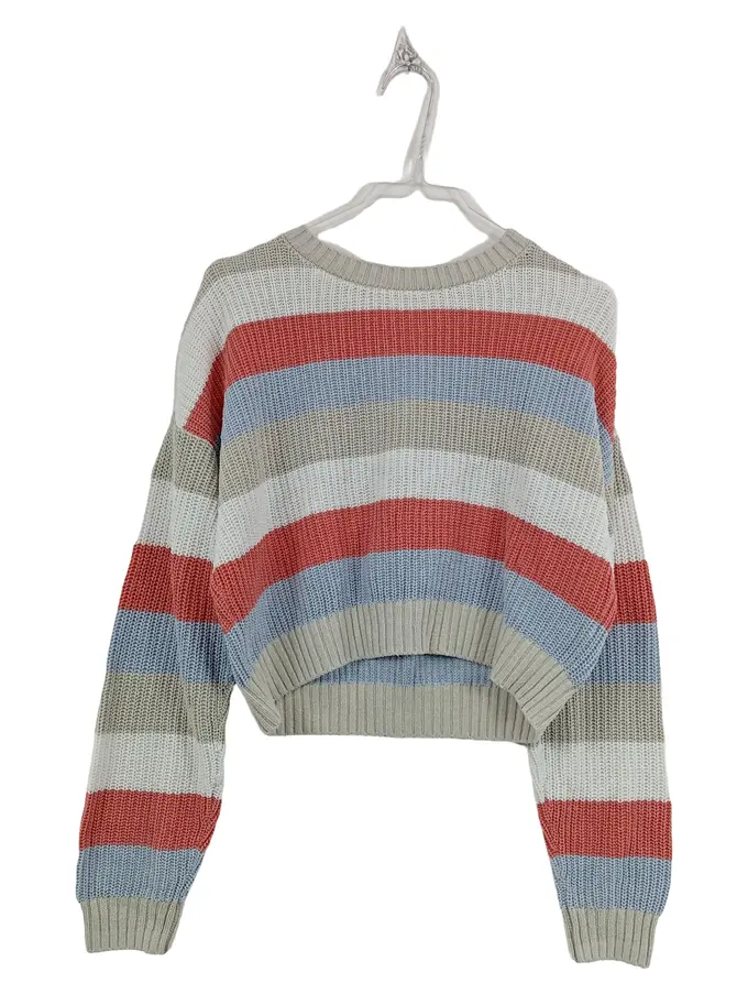 Pullover Damen 34/XS Gestreift Cropped Strickpullover Baumwolle Bunt