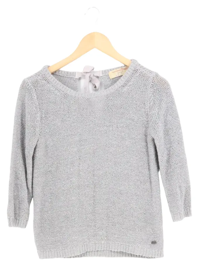 Pullover Damen Gr. 32/XXS Grau Casual Strick mit Schleife
