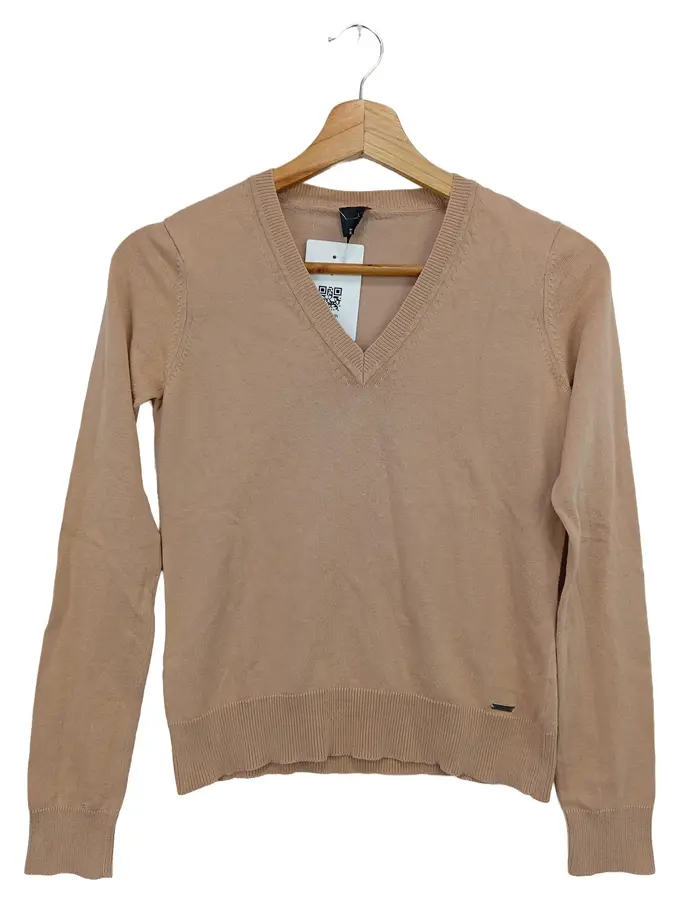 Pullover Damen Gr. 34/XS Beige V-Ausschnitt Klassisch Elegant
