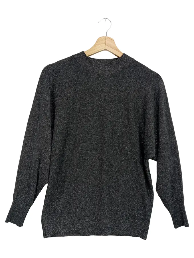 Pullover Damen Gr. 34/XS Grau Elegant Metallic Langarm