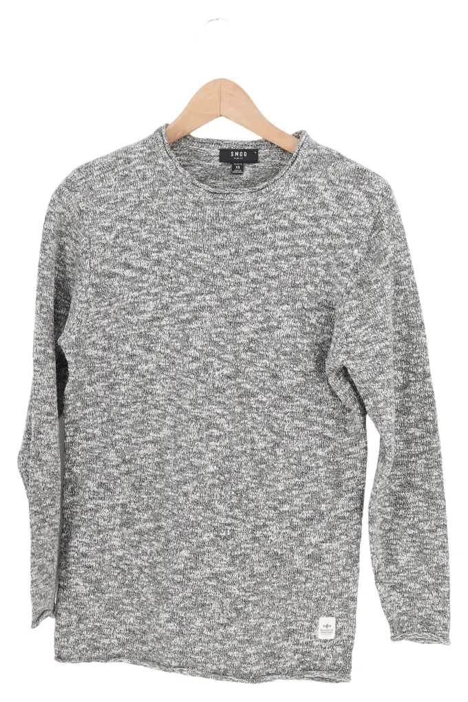 Pullover Damen Gr. 34/XS Grau Meliert Casual Langarm Strickpullover