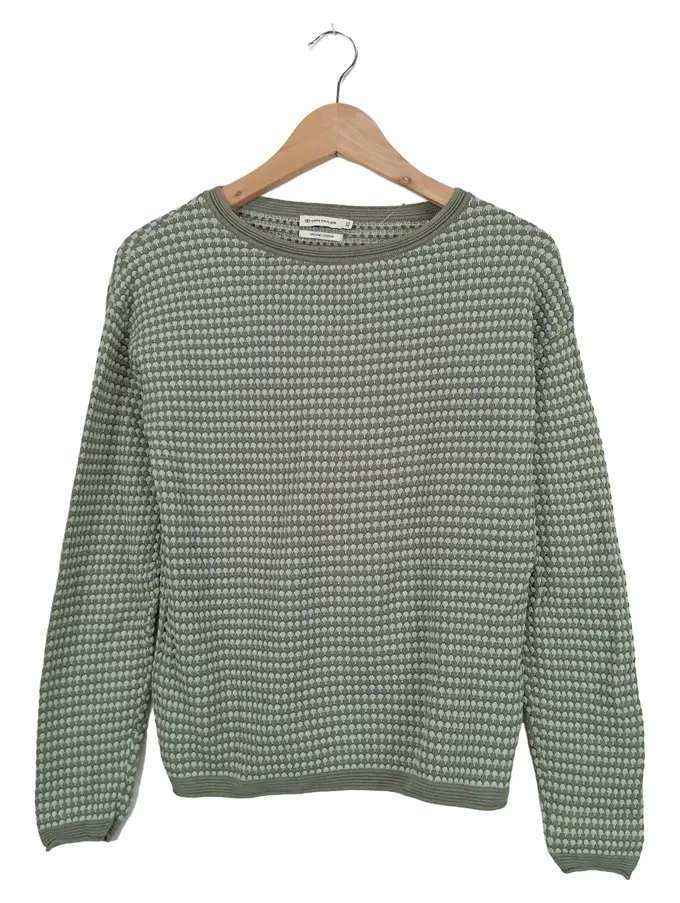 Pullover Damen Gr. 34/XS Grün Casual Strukturmuster Langarm