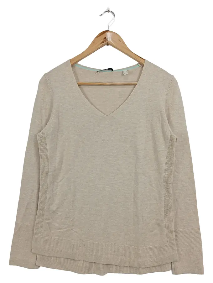 Pullover Damen Gr. 36/S Beige V-Ausschnitt Casual Basic Langarm