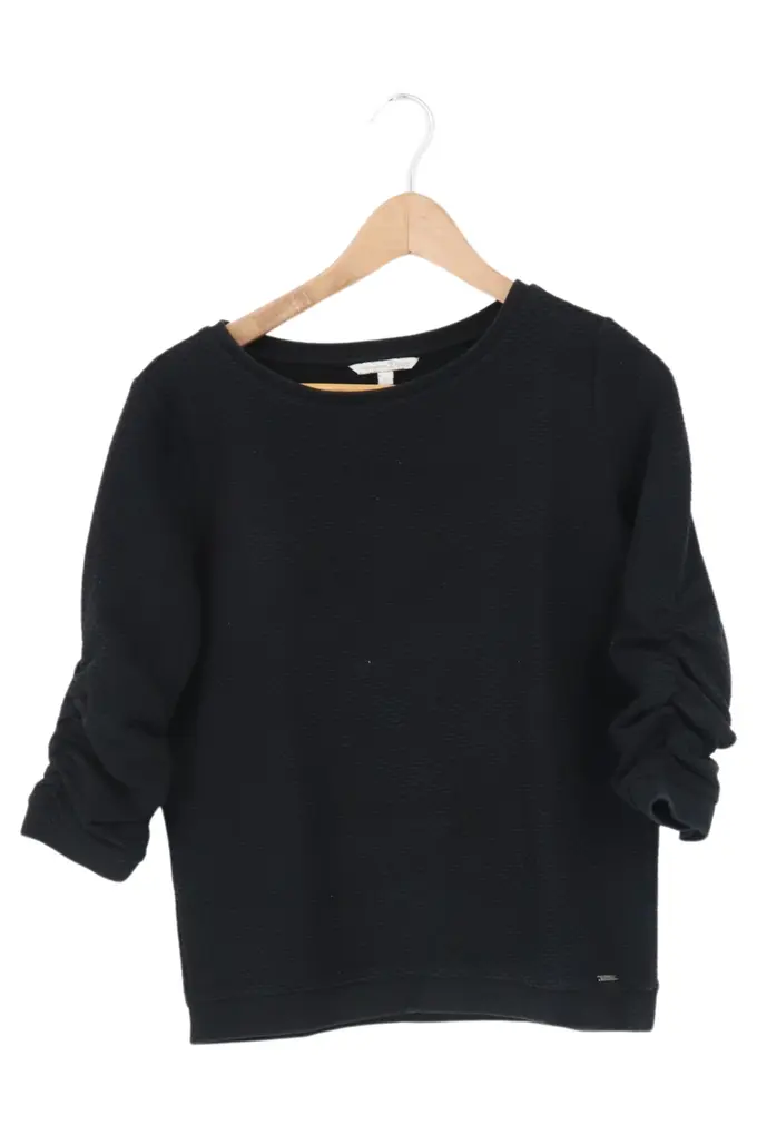 Pullover Damen Gr. 36/S Schwarz Klassisch Casual Raffungen