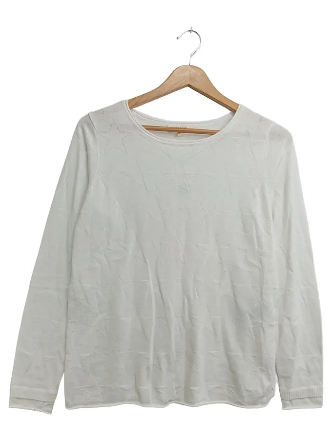 Pullover Damen Gr. 36/S Weiß Sterne Klassisch Elegant Langarm