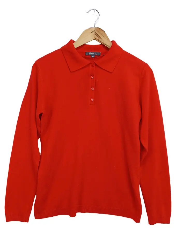 Pullover Damen Gr. 40/L Rot Klassisch Casual Langarm Polo-Kragen