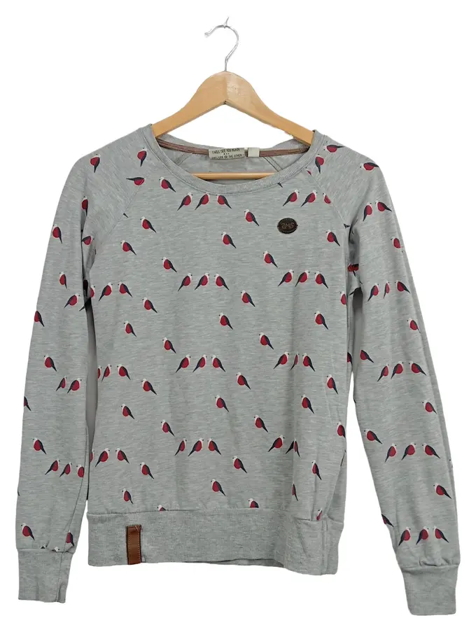 Pullover Damen Gr. M Grau Vogel Print Sweatshirt Bird