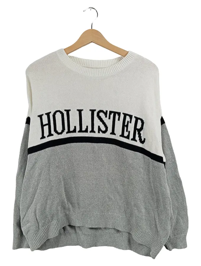 Pullover Damen Gr. M Grau Weiß Strickpullover Logo