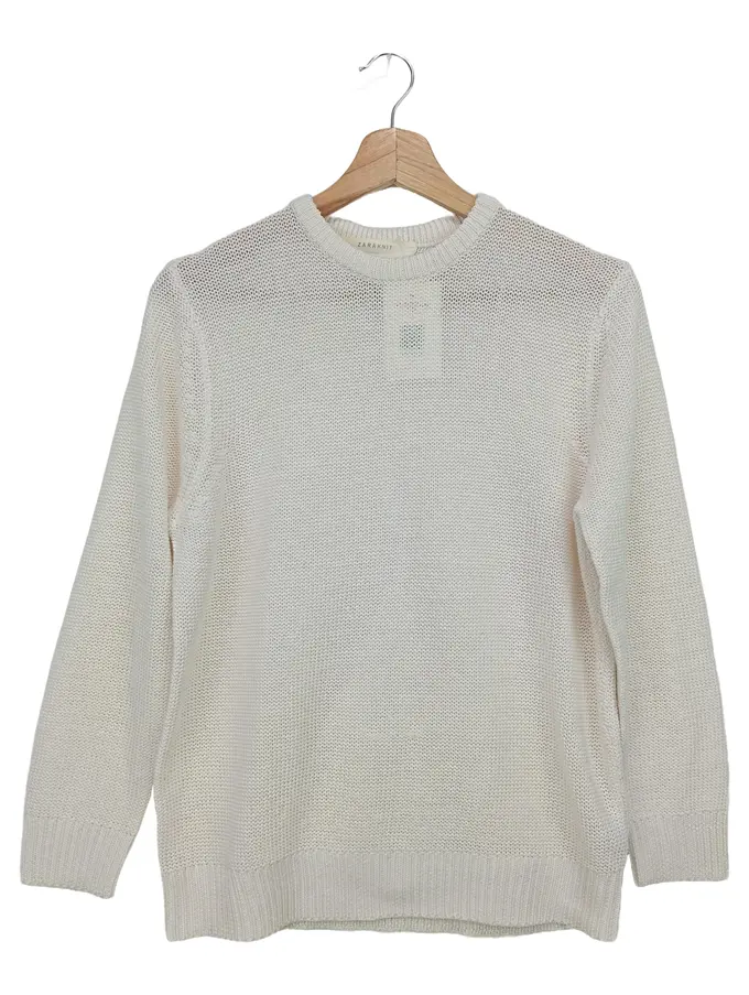 Pullover Damen Weiß S Klassisch Elegant Rippstrick Cut-Outs