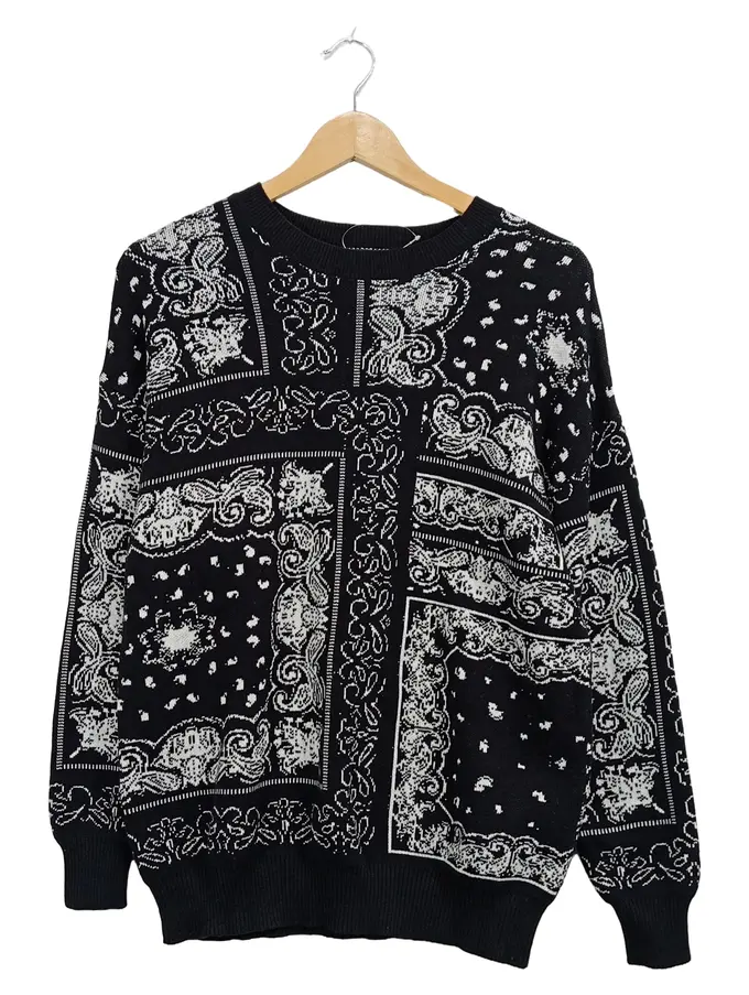 Pullover Herren Bandana Paisley Muster Schwarz Weiß Gr. S