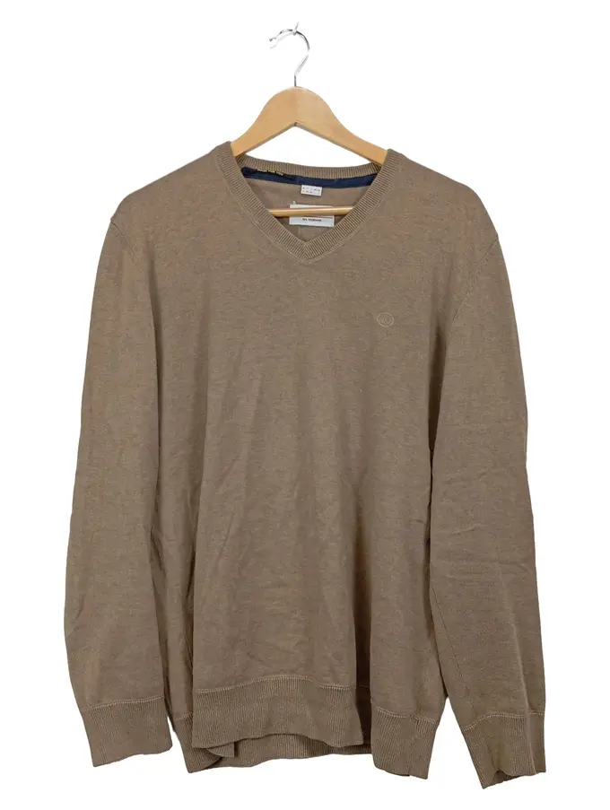 Pullover Herren Gr. L Beige V-Ausschnitt Baumwolle Basic