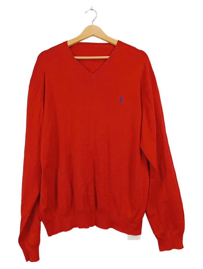 Pullover Herren V-Ausschnitt Rot XXL Baumwolle Klassisch
