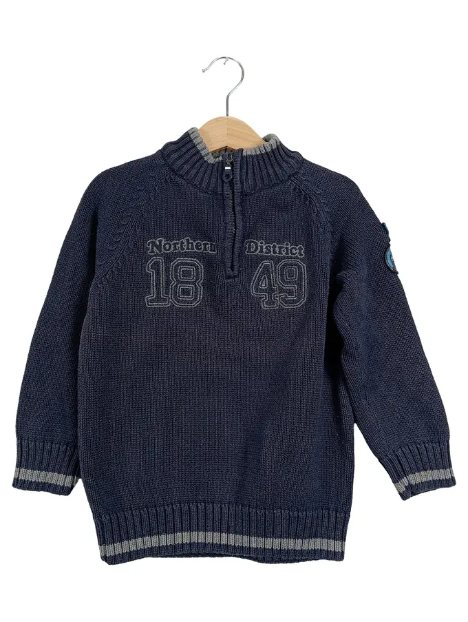 Pullover Jungen Strickpullover Troyer Gr. 104-110 Blau Baumwolle Mix