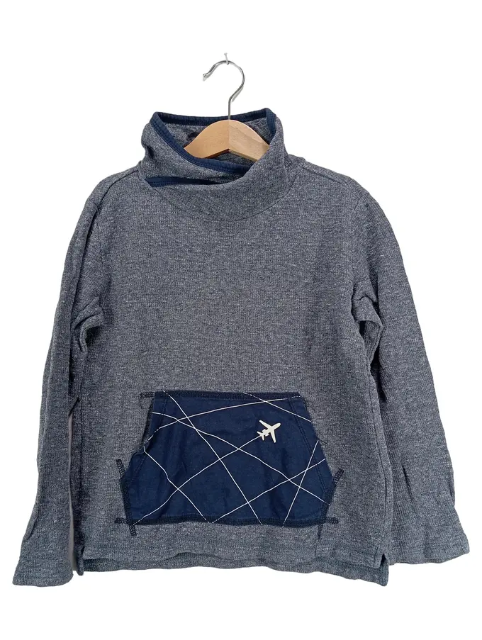 Pullover Kinder Gr. 128 Grau Melange Rollkragen Baumwolle