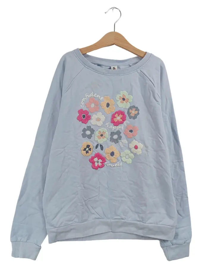 Pullover Kinder Gr. 158, 164 Blau Blumenmuster Casual Sweatshirt