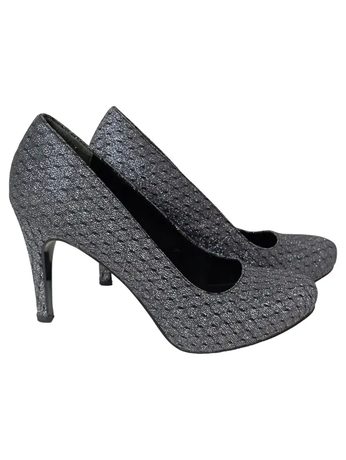 Pumps Damen Gr. 39 Grau Glitzer Elegant High Heels
