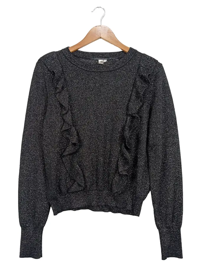 Q/S by s.Oliver Damen Pullover Gr. M Schwarz Glitzer Rüschen Metallic