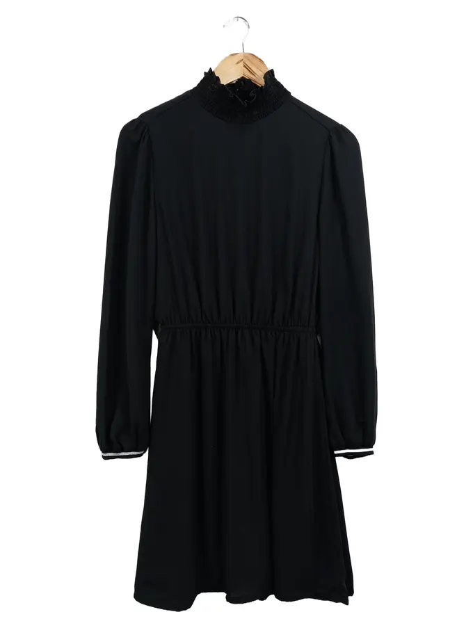 QS S.OLIVER Damen Blusenkleid Gr. 36/S Schwarz Elegant Hoher Kragen