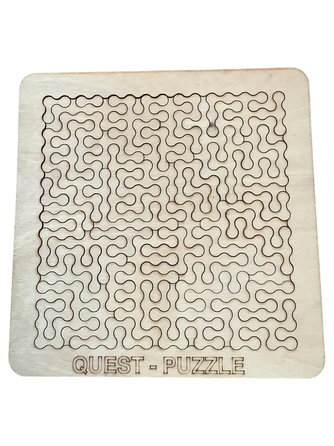 Anspruchsvolles Holzpuzzle mit verschlungenen Labyrinth-Mustern. Die lasergeschnittenen Puzzleteile greifen durch ihre geschwungene Form ineinander. Ein Geduldsspiel für Knobelfreunde, das räumliches Denken und Feinmotorik fordert. Geeignet für Erwachsene und ältere Kinder, die eine Herausforderung suchen.