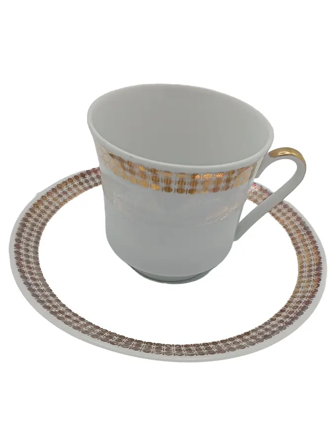 Röslau Tasse Unterteller Porzellan Weiß Gold Elegant Grafisch