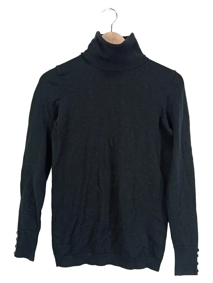 Rollkragenpullover Damen Basic Baumwolle Langarm Schwarz S 36