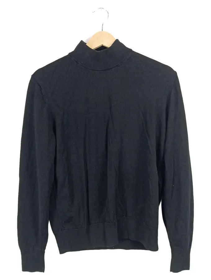 Rollkragenpullover Herren Gr. S Schwarz Wolle Basic Pullover