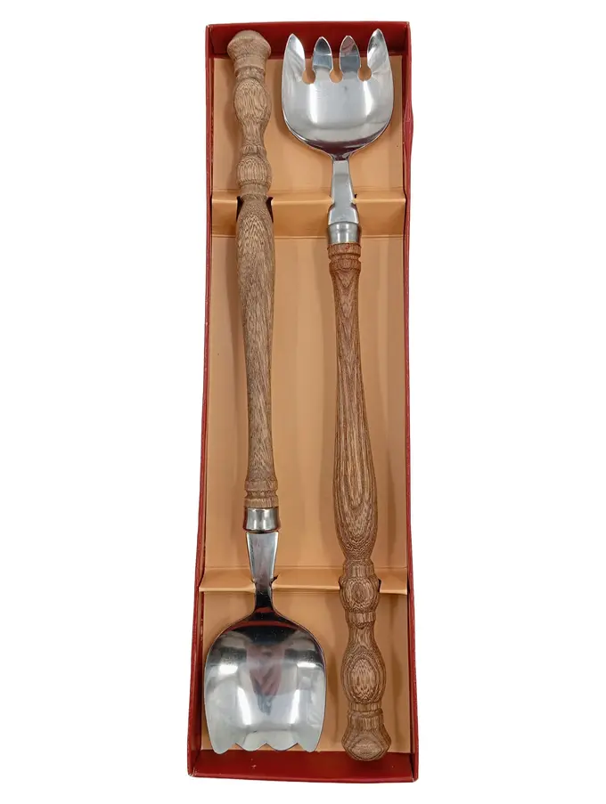 Salatbesteck 2tlg Set Löffel Gabel Holzgriff Edelstahl Rostfrei Retro