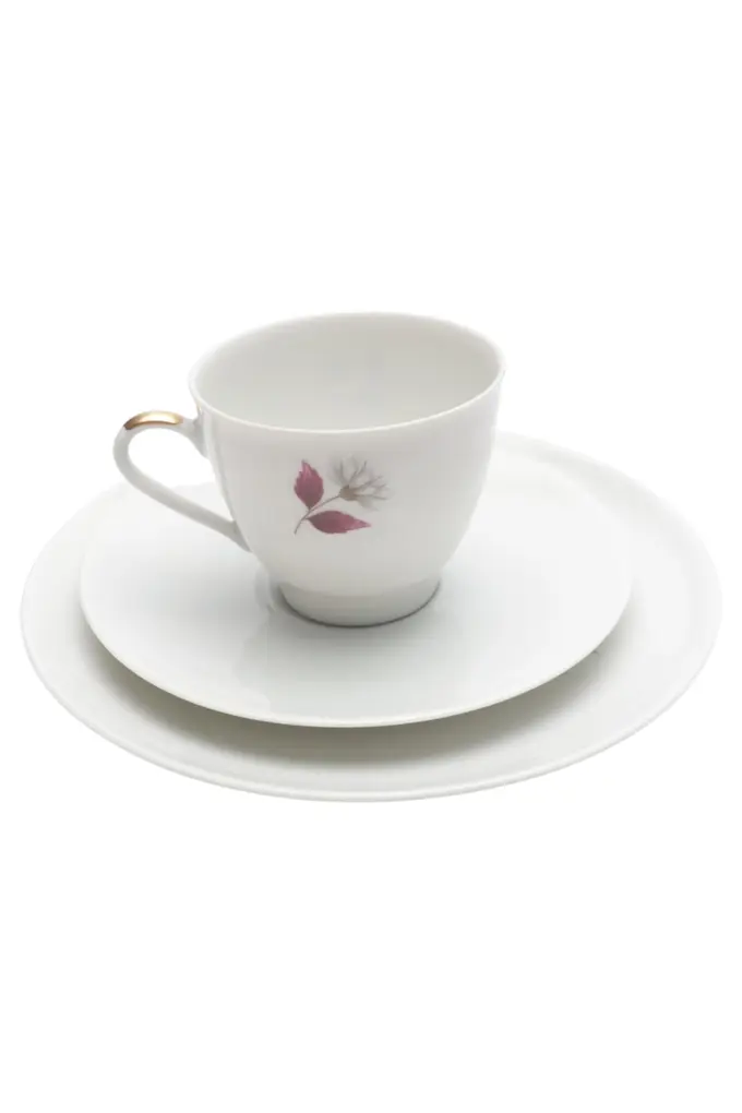 Sammelgedeck Porzellan Weiß Blumenmotiv 3-teilig Tasse Untertasse Teller