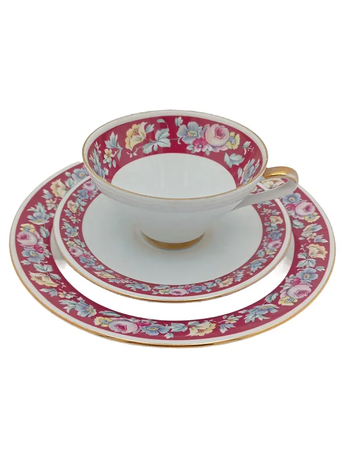 Sammelgedeck Rot Blumenmuster Tasse Untertasse Kuchenteller