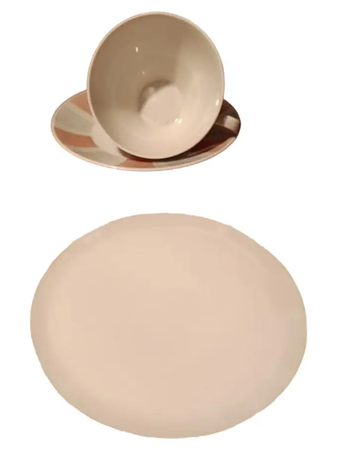 Sammelgedeck Teller Tasse Beige Streifen Porzellan