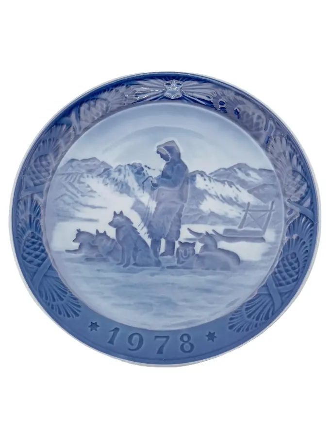 Sammelteller 1978 Grönland Szene Schlittenhunde Blau 18cm
