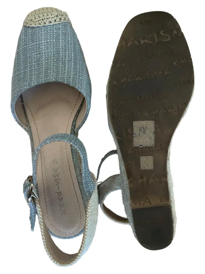 Sandaletten Damen 38 helles Blau Keilabsatz Casual