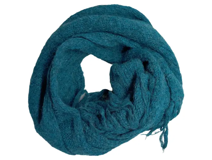 Schal Damen Alpaka Petrol 200x24 cm Fransen Meliert Casual
