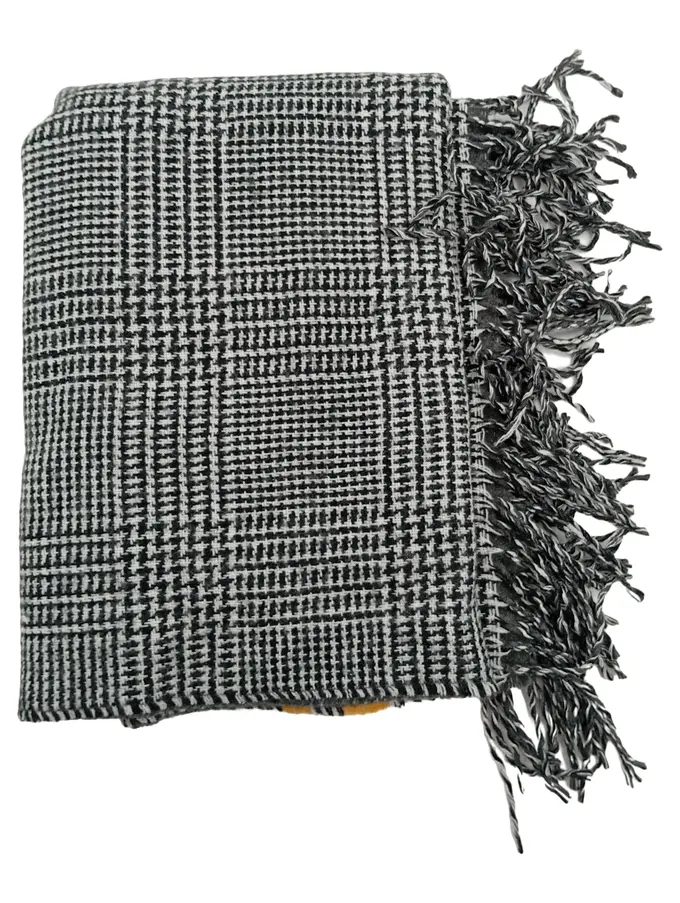 Schal Kariert Grau Schwarz Gelb Fransen 180x70 cm Winterschal
