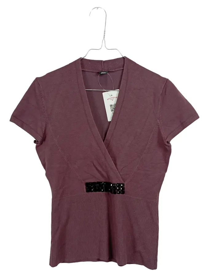 Selection Damen Top Gr. 36 Lila Wickeloptik Pailletten Elegant