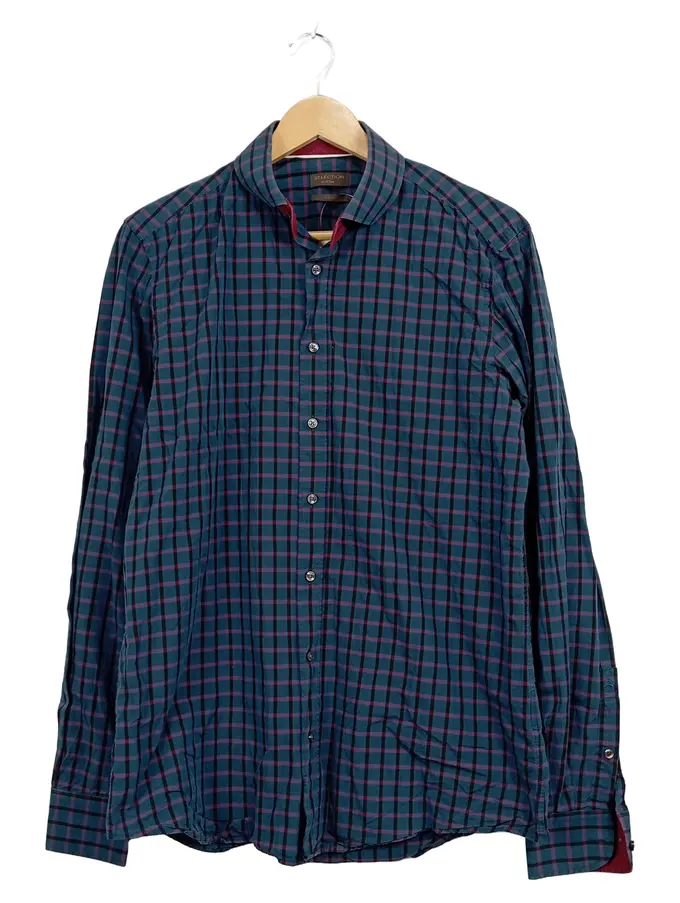 Selection Hemd Herren Gr. 39 Kariert Petrol Baumwolle Business