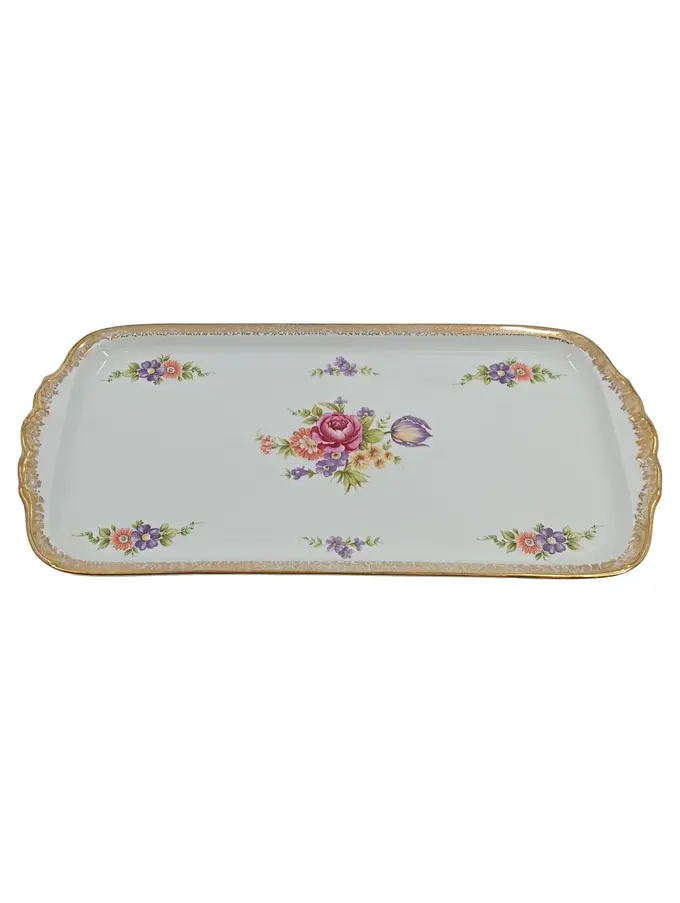 Servierplatte Porzellan 34x17cm Weiß Blumenmuster Goldrand