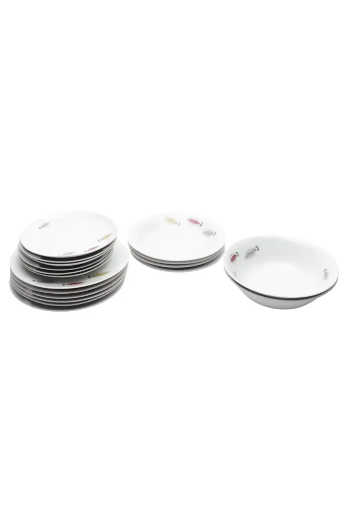Servierset Porzellan Weiß Blatt Muster Elegant Klassisch