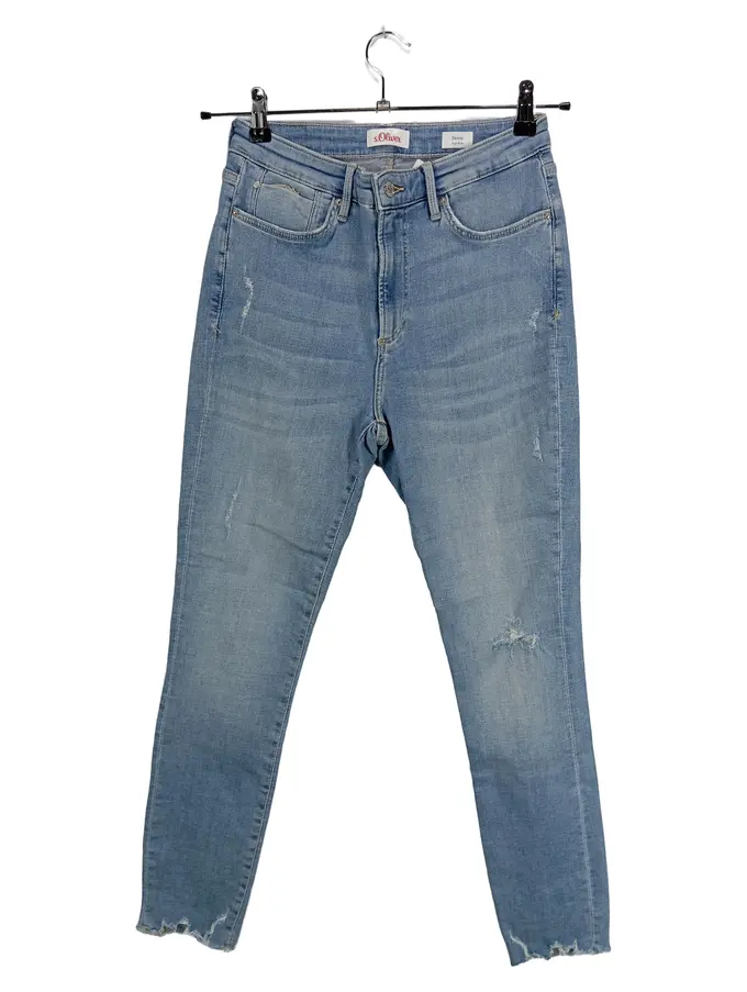 Skinny High Rise Jeans Damen Gr. 36 Blau Destroyed Look