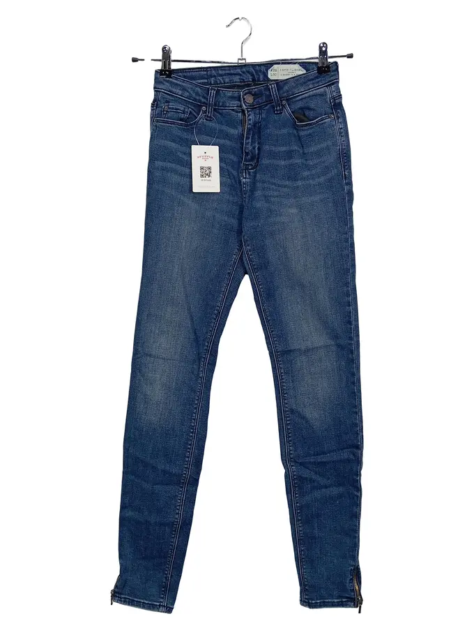 Skinny Jeans Damen Blau W28 L30 Stretch Reißverschluss Details Baumwolle