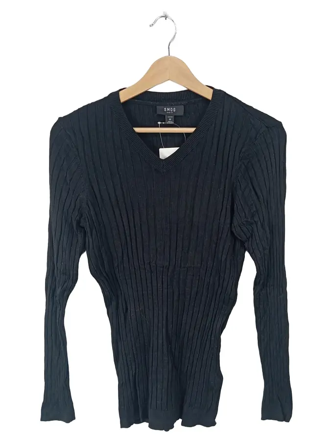 Slim Fit Strickpullover Damen Gr. M Schwarz V-Ausschnitt Rippstrick