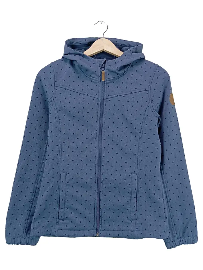 Softshelljacke Kinder Gr. 164 Blau Punkte Kapuze Outdoor