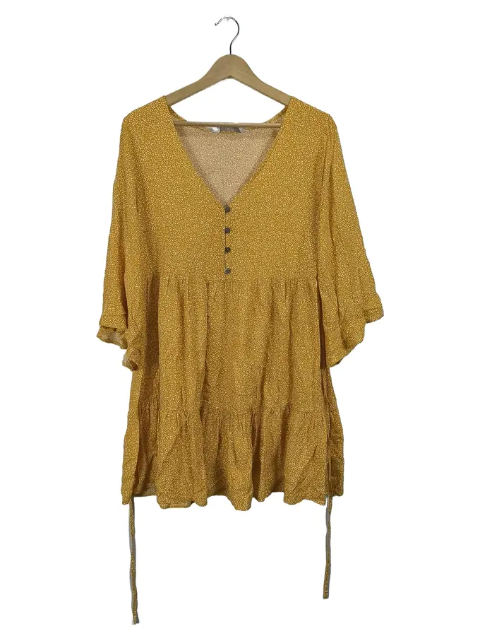 Sommerkleid Blumenmuster Damen Gr. S Gelb Viskose Freizeit