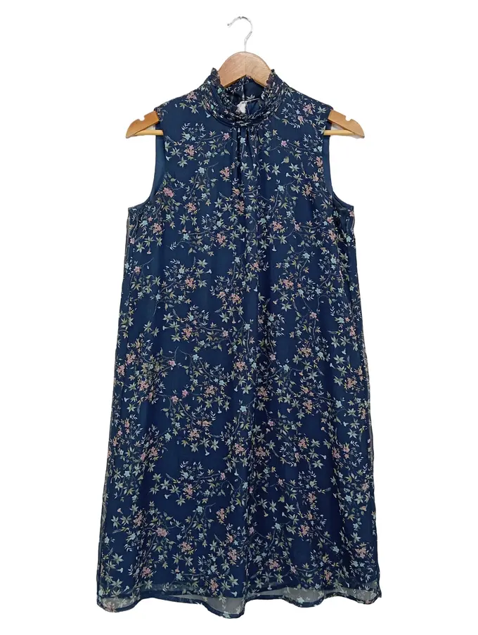 Sommerkleid Damen Gr. 36 Blau Feminin Florales Muster Midikleid