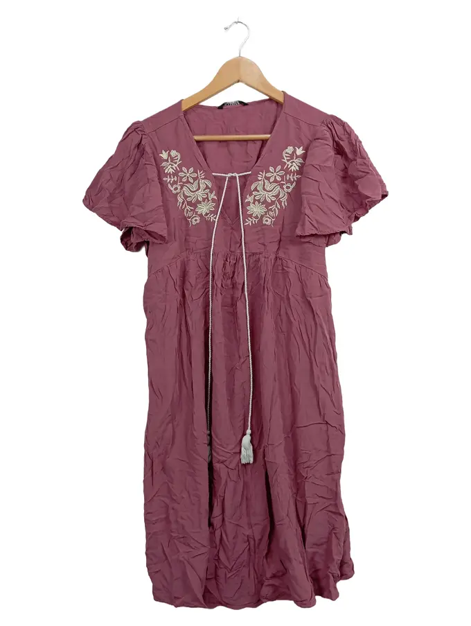 Sommerkleid Damen Gr. 42 Rosa Bohemian bestickt Midikleid