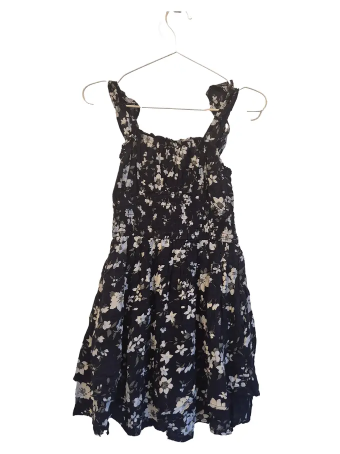 Sommerkleid Damen S 36 Schwarz Blumenmuster Rüschen