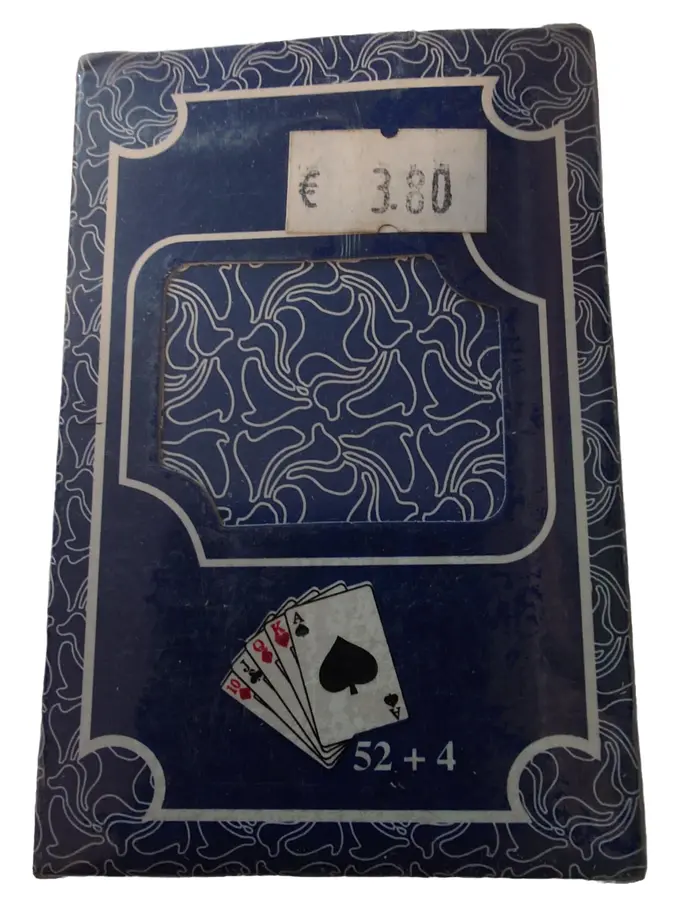 Klassisches Kartenspiel mit 52 Spielkarten plus 4 Jokern. Geeignet für beliebte Kartenspiele wie Poker, Skat, Rommé, Bridge und viele weitere. Das Deck zeigt ein elegantes blaues Rückenmuster mit geschwungenen Linien. Ideal für Spieleabende mit Familie und Freunden.