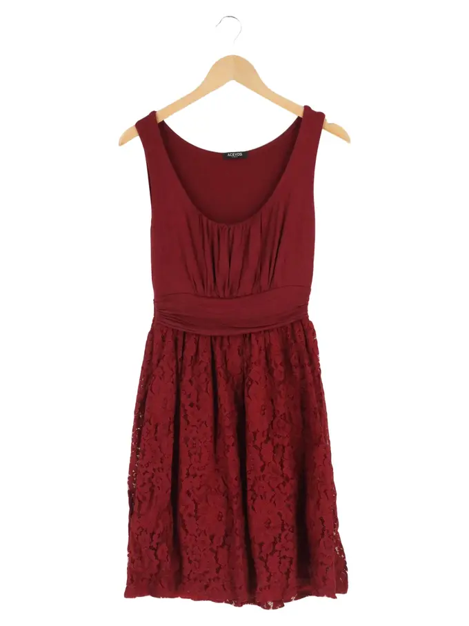 Spitzenkleid Damen Gr. 36/S Rot Elegant Casual Vintage Midikleid