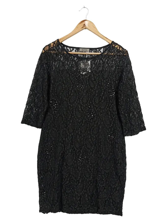 Spitzenkleid Damen Gr. 42/XL Elegant Paisley Midikleid Pailletten Schwarz