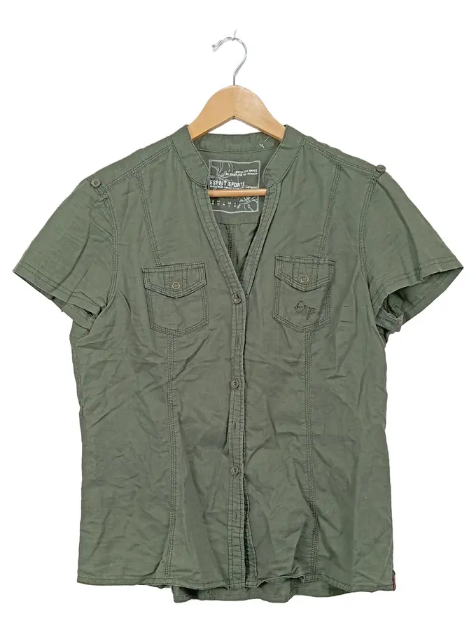Sports Damen Hemdbluse Gr. 40/L Oliv Leinen Kurzarm Casual